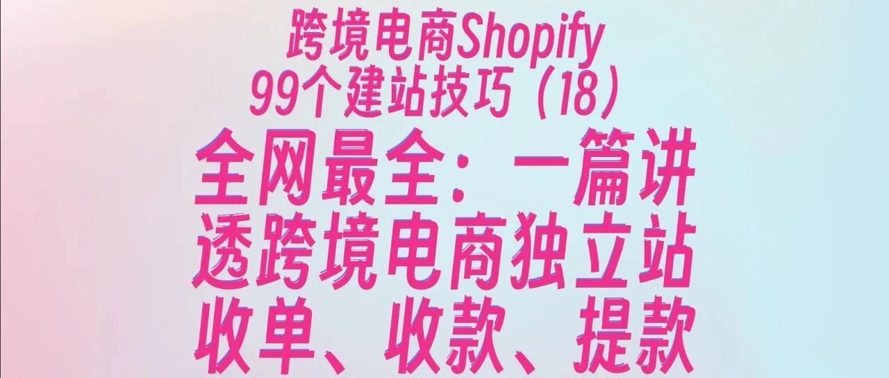 全网最全:一篇讲透跨境电商独立站收单、收款、提款!如何收款提款?99个Shopify建站技巧(19)